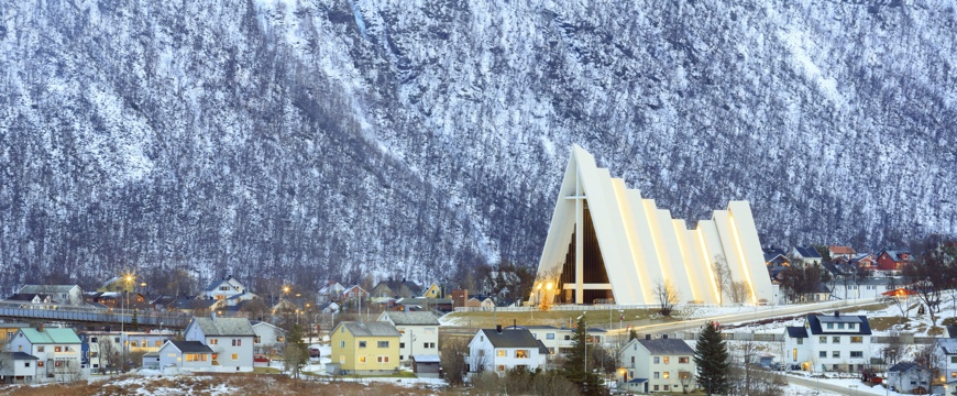 Arctic Cathedral. Tromsdalen Church was a parish of the lutheran Church of Norway. The modern concrete and metal structure was built in a shotgun style in 1965. The building looked like a series of white triangles that made up its form, and seating about 600, it was a masterpiece of architecture, and certainly